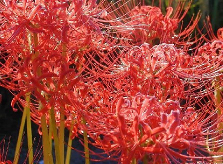 彼岸花,开彼岸,只见花,不见叶”的说法。